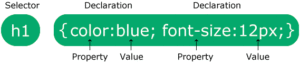 here, h1 is the HTML element for rendering headings. h1 { color: navy; } /* Class selector */
